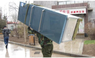 3.兩個(gè)人就一個(gè)人抬前面底部,一個(gè)人托背面上部。