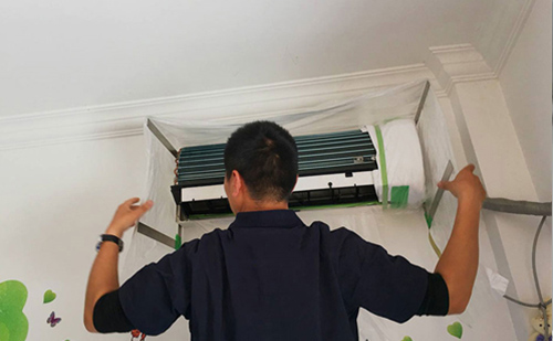 1、首先,需要使用專用掛壁空調(diào)罩將空調(diào)罩起來,防止清洗過程中水花四濺將地板或者沙發(fā)等被污染。