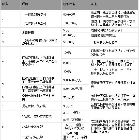 空調(diào)安裝收費標(biāo)準(zhǔn)
