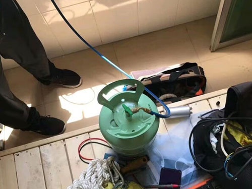 機組正常發(fā)動后,從室外機低壓閥側(cè)的工藝口銜接加氟設備,在此過程中一定要排掉加氟管中的空氣和臟物。