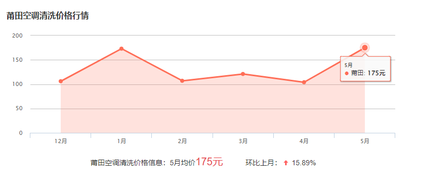 莆田清洗空調(diào)的收費標準一般在60-300元不等,由于空調(diào)的型號和規(guī)格不同,收費標準也有所不同,因此具體的費用要師傅根據(jù)具體情況報價!下面為莆田近幾個月的空調(diào)的費用波動圖,僅供參考: