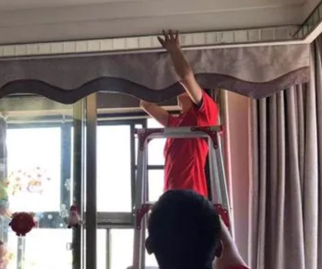 (1)用雞毛撣子將窗簾表面的塵土掃除干凈。