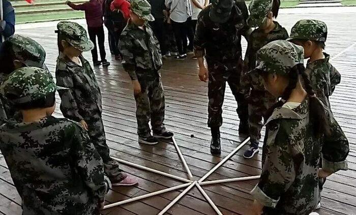 2、荊棘取水:利用長繩,在人員足不落地的情況下,完成規(guī)定的取水任務。家長、孩子共同完成;小組人數(shù):10-20人。記住,孩子可以利用的只有一根繩子,還有孩子的智慧……