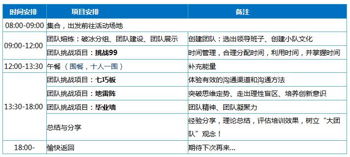 翼學(xué)一天拓展訓(xùn)練方案: