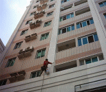 外墻清洗分為吊板方式和擦窗方式。吊板方式是用吊繩、吊板將