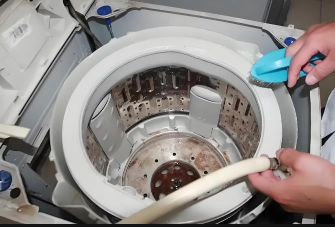 第四步:浸泡后,將水全部排盡,然后用毛巾把殘留在洗衣機(jī)內(nèi)筒的污垢擦掉。需注意的是,如污垢頑固,要反復(fù)清洗和擦拭,且水溫最好為40℃。