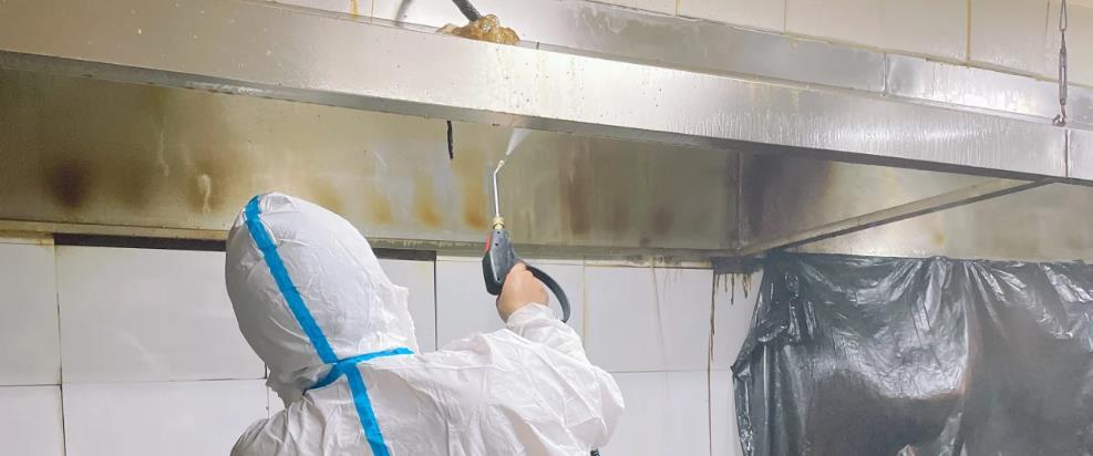 清洗油煙罩:使用高壓水槍或蒸汽清洗設(shè)備對油煙罩進(jìn)行清洗。